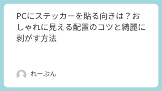 家庭 PCにステッカーを貼る向きは?おしゃれに見える配置のコツと綺麗に剥がす方法 パソコンにステッカーを貼ると、いつもの作業時間が少し楽しくなります。 自分らしさをそっと表現できたり、好きなものをそばに置けたりと、気分が上がる小さな工夫です。でも、貼り方や向きを間違えると「なんだかちょっと思っていたのと違う…」となってし... 家庭