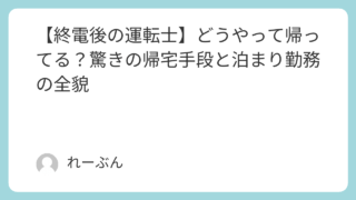 雑学 【終電後の運転士】どうやって帰ってる?驚きの帰宅手段と泊まり勤務の全貌 終電を運転し終えたあと、鉄道の運転士たちはどうやって帰っているのでしょうか?実は、多くのケースでは自宅には帰らず、駅や車庫に併設された施設に「泊まり勤務」として滞在するのが一般的です。では、全員が泊まり勤務なのかというと、そうではありません... 雑学