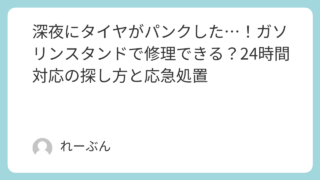 雑学 深夜にタイヤがパンクした…!ガソリンスタンドで修理できる?24時間対応の探し方と応急処置 深夜や早朝の時間帯に、突然タイヤがパンクしてしまうと、とても不安になりますよね。明るい時間ならお店も開いていて助けを求めやすいですが、夜は人も少なく、どこに相談すればいいのか迷ってしまうこともあります。とくに女性の方や運転にまだ慣れていない... 雑学