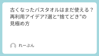 家庭 古くなったバスタオルはまだ使える?再利用アイデア7選と“捨てどき”の見極め方 古くなったバスタオルを見て、「もう使えないかな…」と感じたことはありませんか?でも、ちょっと待ってください。実はそのタオル、捨ててしまうのはとてももったいないんです。バスタオルは使い続けるうちに繊維が柔らかくなり、肌にやさしい質感になってい... 家庭