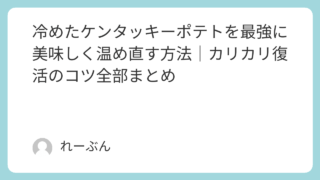 雑学 冷めたケンタッキーポテトを最強に美味しく温め直す方法|カリカリ復活のコツ全部まとめ 冷めたケンタッキーのポテトを見て「もう美味しくないかも…」と少し残念な気持ちになったことはありませんか?でも大丈夫です。ちょっとしたコツを知っておくだけで、あのカリッとホクホクの食感をしっかり取り戻せます。 お家にある道具で簡単にできる方法... 雑学