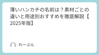 雑学 薄いハンカチの名前は?素材ごとの違いと用途別おすすめを徹底解説【2025年版】 薄いハンカチについて「正式な名前ってあるの?」「どれを選べば失敗しないの?」と気になる方は多いですよね。最近はミニバッグやスマホショルダーなど小さめバッグが主流になり、薄手のハンカチを探す人が増えています。薄手ハンカチは軽くて持ち歩きやすく... 雑学