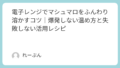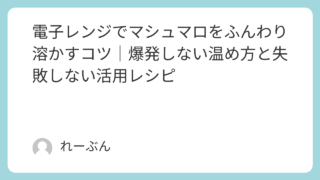 家庭 電子レンジでマシュマロをふんわり溶かすコツ|爆発しない温め方と失敗しない活用レシピ ふだんのおやつ作りをもっと手軽にしてくれるマシュマロ。 そのまま食べてもおいしいですが、電子レンジで少し温めるだけで、トロッと甘くてとびきり可愛いスイーツ素材に変身します。でも、「急にふくらんでこわい…」「爆発しない?」「どれくらい温めれば... 家庭