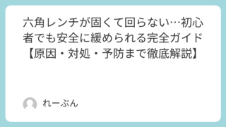 家庭 六角レンチが固くて回らない…初心者でも安全に緩められる完全ガイド【原因・対処・予防まで徹底解説】 固い六角レンチは、一見するとまったく動かないように見えても、正しい順番とコツさえ知っていれば初心者さんでも安全に緩められます。焦って力まかせに回すと、ネジを潰したりレンチを痛めたりしてしまうこともあるので、落ち着いて取り組むことがとても大切... 家庭