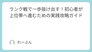 雑学 ランク戦で一歩抜け出す!初心者が上位帯へ進むための実践攻略ガイド ランク戦は緊張感があって、少しハードルが高いと感じる方も多いですよね。でも大丈夫です。ポイントを押さえながら進めれば、初心者さんでもコツコツ上位帯を目指せます。この記事では、仕組みの理解から立ち回りのコツ、仲間との連携方法まで、やさしく丁寧... 雑学