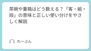 雑学 茶碗や重箱はどう数える?「客・組・段」の意味と正しい使い分けをやさしく解説 日本の器には、ひとつひとつに丁寧な数え方があります。普段はあまり意識しない言葉でも、場面に合わせて正しく使い分けることで、相手への印象がふんわりとやさしく、そして上品になります。「客」「組」「段」などの専門的な言い回しは難しそうに見えますが... 雑学