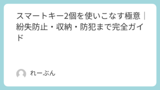 家庭 スマートキー2個を使いこなす極意|紛失防止・収納・防犯まで完全ガイド あなたの車にも「スマートキー」が2個付属していませんか?多くの人が1つだけを使い、もう1つは「予備」として眠らせていることが多いですが、実は2個を上手に活用することで、便利さと安心感を同時に手に入れることができます。この記事では、スマートキ... 家庭