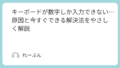 雑学 キーボードが数字しか入力できない…原因と今すぐできる解決法をやさしく解説 突然キーボードが数字しか入力できなくなると、「どうしよう…」と不安になってしまいますよね。とくに仕事中や学校の課題など、すぐに入力したい時に限って起こるので焦ってしまう方も多いはずです。でもご安心ください。この現象はむずかしいトラブルではな... 雑学