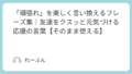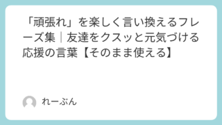 雑学 「頑張れ」を楽しく言い換えるフレーズ集|友達をクスッと元気づける応援の言葉【そのまま使える】 友達を応援したいとき、つい「頑張れ」と言ってしまうことはありませんか。もちろん素敵な言葉ですが、毎回同じだと少し味気なく感じてしまうこともありますよね。そんなときに便利なのが、やさしくて面白い言い換えの応援フレーズです。この記事では、初心者... 雑学