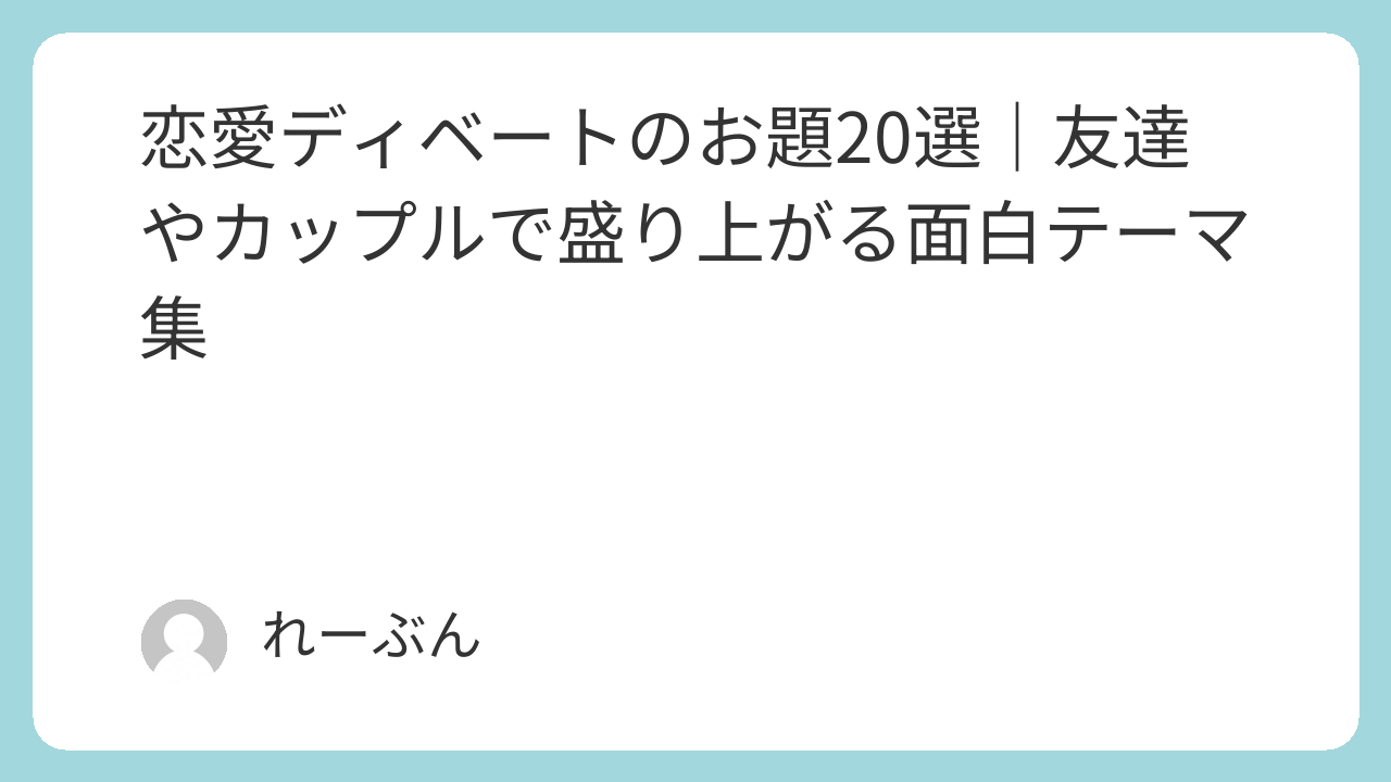 この記事では、「恋愛ディベート」をテーマに、友達同士でもカップルでも楽しめる面白いお題を20個厳選しました。