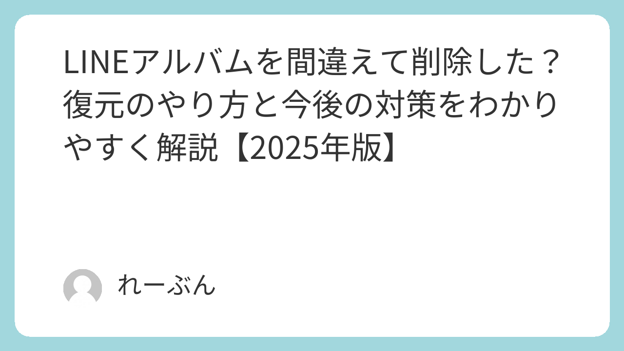 LINEアルバムを間違えて削除した?復元のやり方と今後の対策をわかりやすく解説【2025年版】