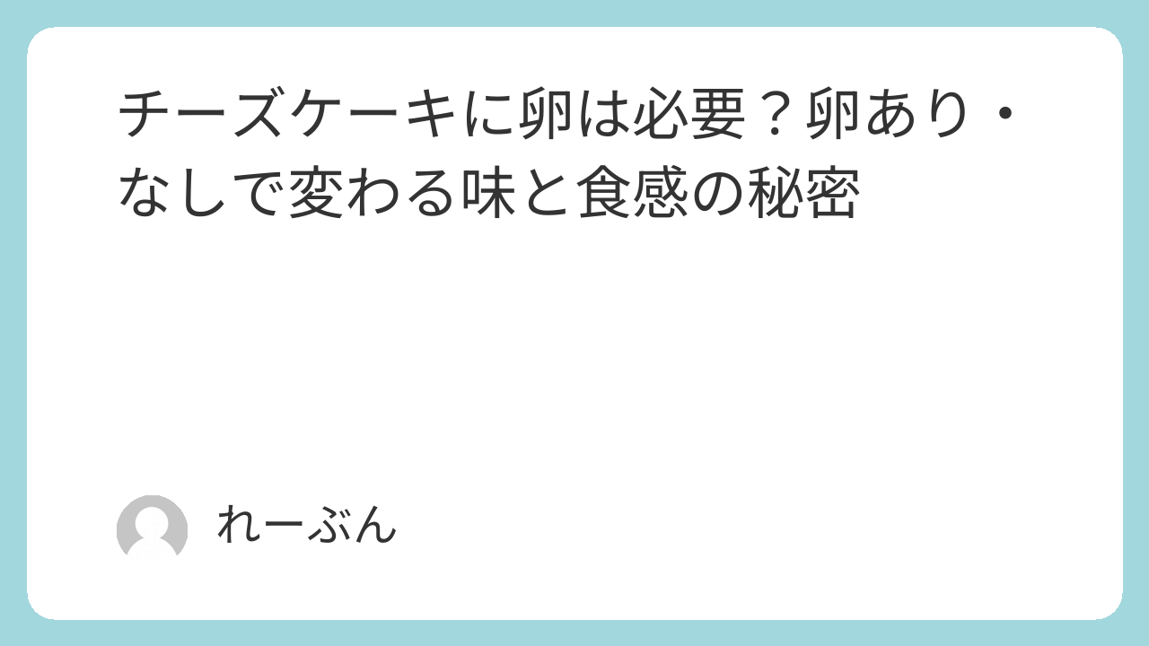 ここまで、チーズケーキにおける卵の役割と、卵あり・なしでの違いを見てきました。