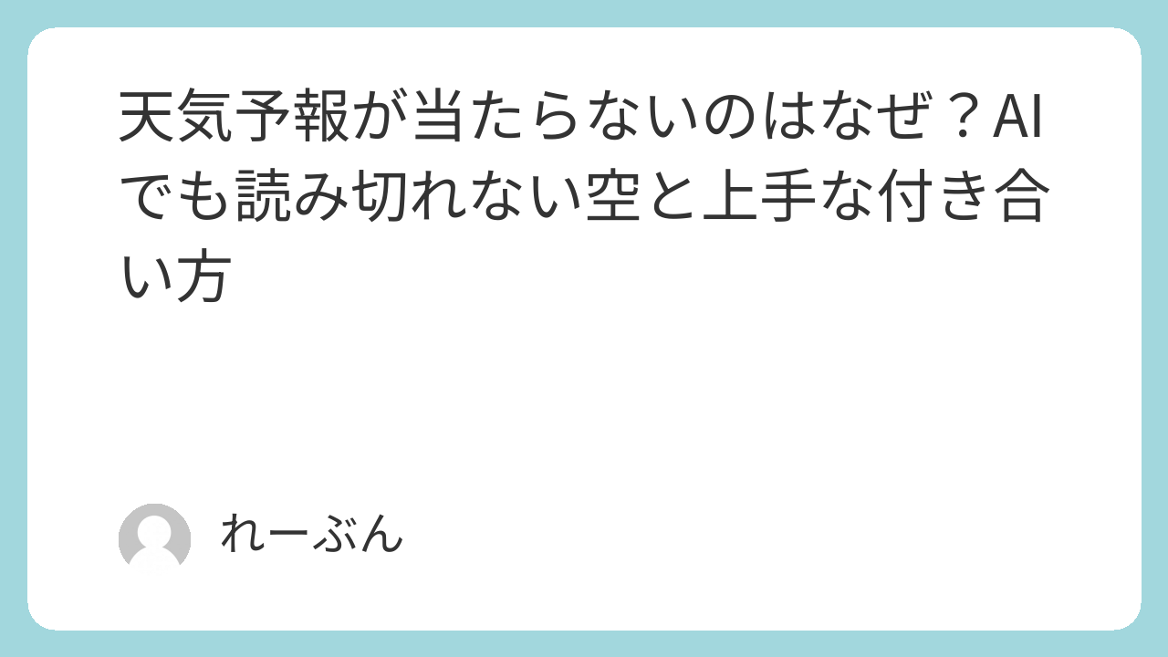 AIを信頼しながらも、最後の判断を自分の感覚で行う――それがこれからの時代の賢い天気との付き合い方です。