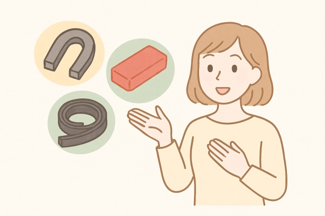 ネオジム磁石、フェライト磁石、ゴム磁石には、それぞれ個性や得意分野があります。