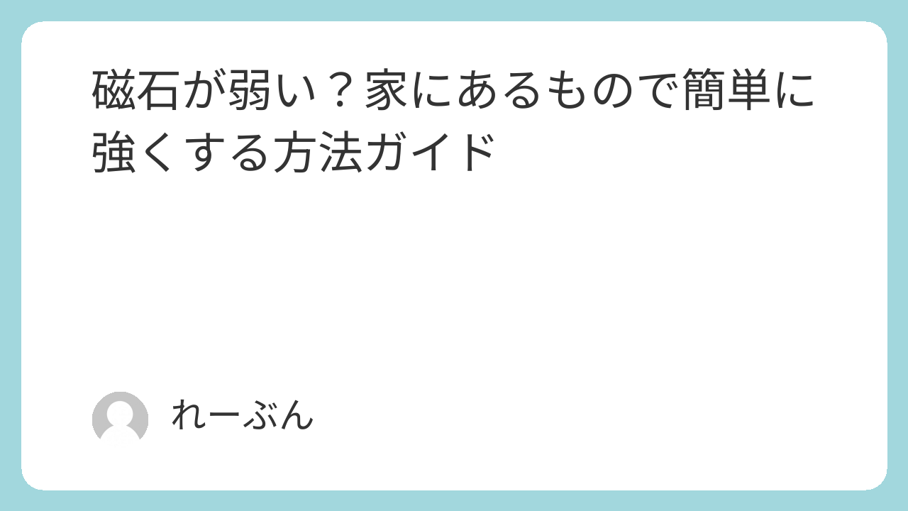 このガイドでは、わかりやすく、やさしい手順で「磁石を強くする方法」をまとめました。 家にある磁石を、もう一度元気にしてあげましょう。