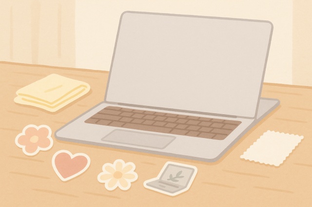 どうしてもデコレーションしたい場合は、パソコン本体ではなくケースやスキンカバーに貼ると安心です。