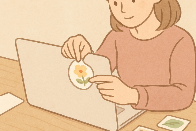 パソコンにステッカーを貼ると、いつもの作業時間が少し楽しくなります。 自分らしさをそっと表現できたり、好きなものをそばに置けたりと、気分が上がる小さな工夫です。