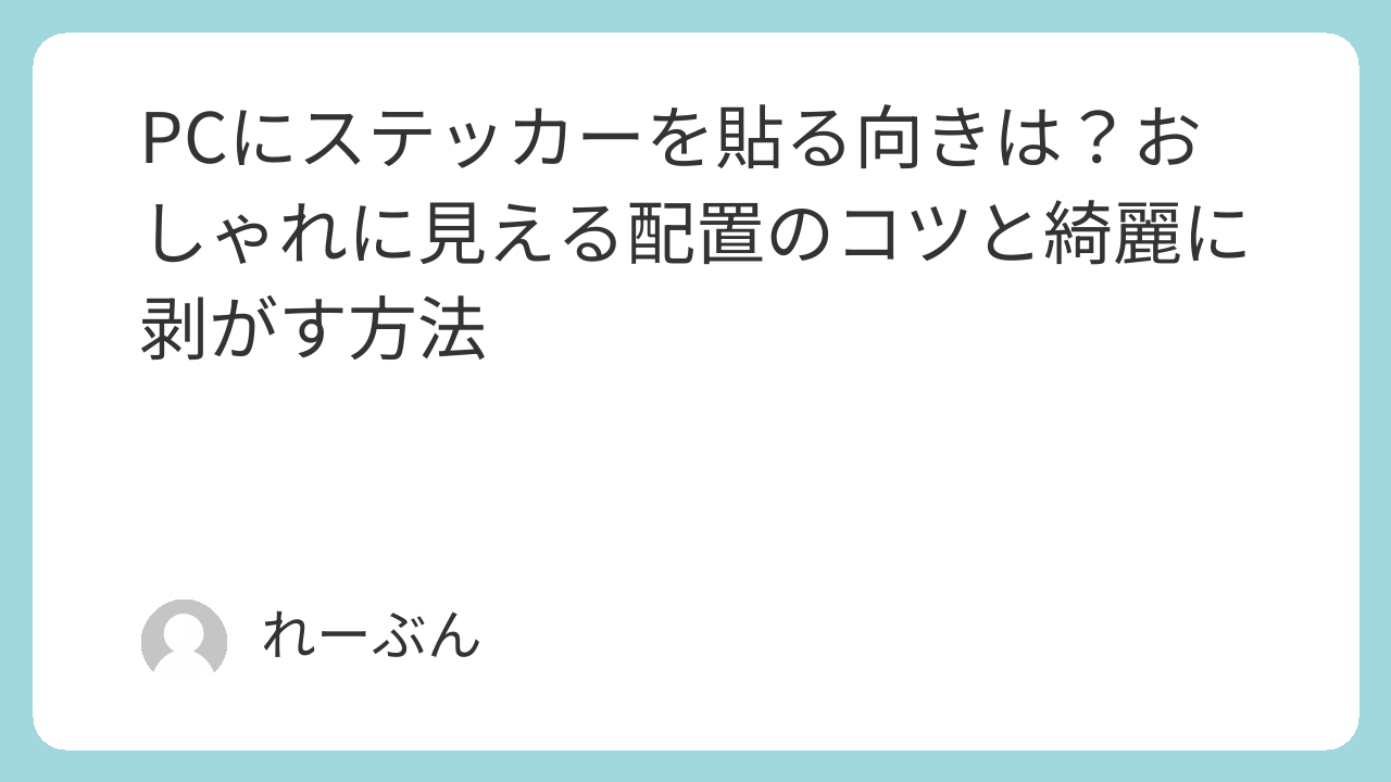 このページでは、パソコンにステッカーを貼るときの基本と、センス良く見える貼り方のコツをやさしく解説します。
