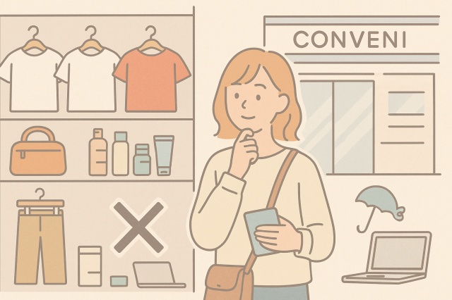 実は、今のコンビニを活用すれば、衣類から歯ブラシ、モバイルグッズまで“ほぼ全部”現地で揃えることができます。