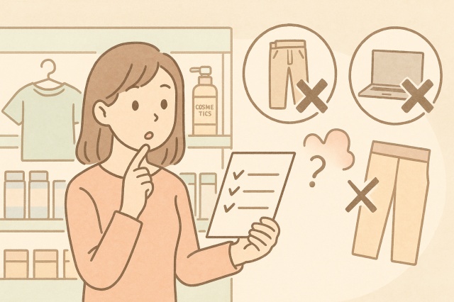 たとえばボトムスや常用薬など、サイズや処方が必要なアイテムはコンビニでは入手できません。