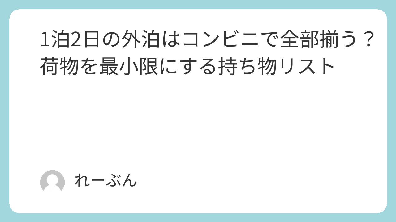 1泊2日の外泊に必要な持ち物の約8割は、実はコンビニで現地調達できます。