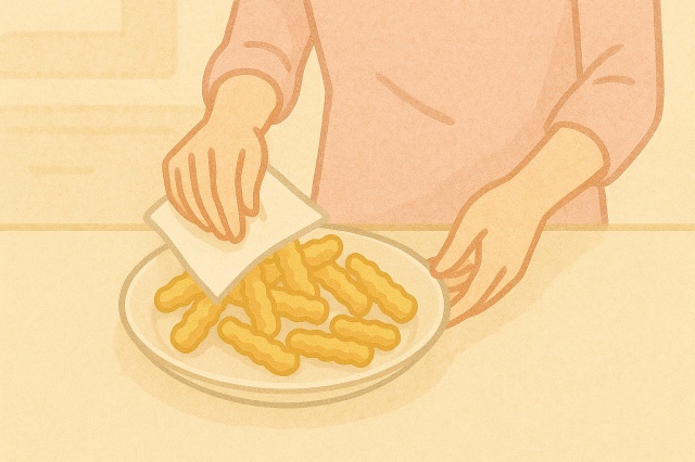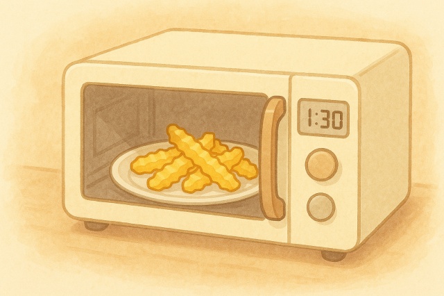 とくに冷めたポテトは油が固まりやすいため、温め前に一度軽く押さえるだけで風味がすっきり整います。