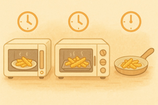 少量なら電子レンジやフライパン、中量以上ならトースターやエアフライヤーが向いています。