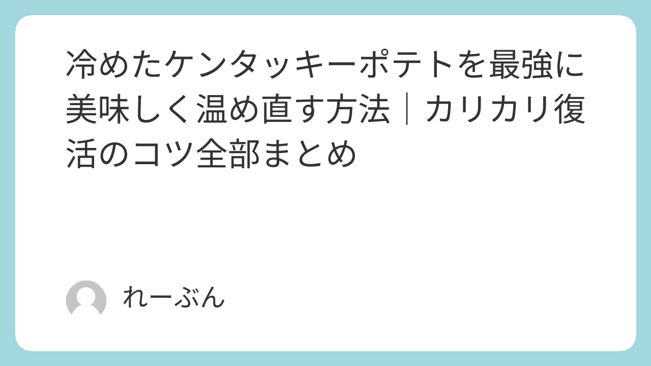 ここでは、ケンタッキーのポテトを“いちばん美味しく”蘇らせるための完全ガイドを、やさしく丁寧にまとめました。