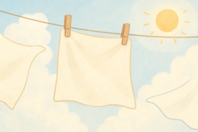 干す前にパンパンと軽く生地を伸ばすだけで、シワが大きく減ります。特にガーゼやコットンはシワが残りやすいため、広げてから干すことで仕上がりがとてもきれいになります。
