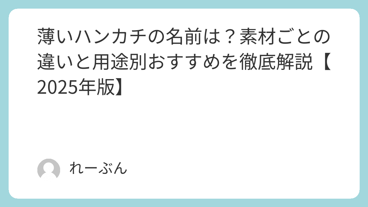 この記事では、薄いハンカチの正式名称、素材の違い、生活シーン別のおすすめ、さらにお手入れのコツまで、初めてでもわかりやすくまとめました。