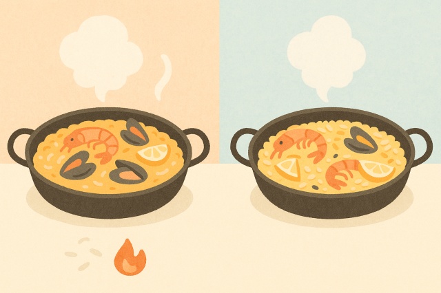 また、パエリアは“炊く料理”でありながら、“焼く料理”の要素もあるため、炒め・煮込み・蒸らし・焼きの要素がすべて組み合わさった奥深いメニューだと覚えておくと理解が深まります。