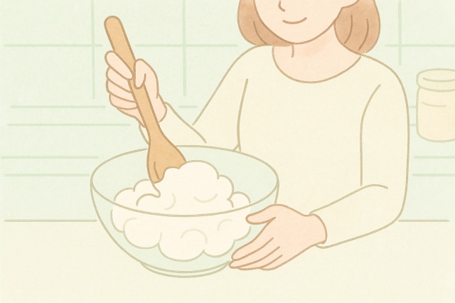 また、混ぜても動かないほど固い場合は水を数滴加えるだけで驚くほど扱いやすくなることがあります。 焦らず“少しずつ調整する”ことが、やさしく仕上げるためのポイントです。