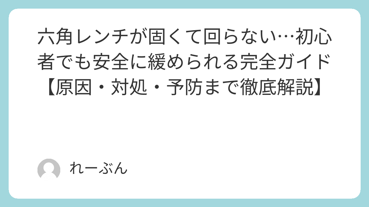 固い六角レンチは、一見するとまったく動かないように見えても、正しい順番とコツさえ知っていれば初心者さんでも安全に緩められます。