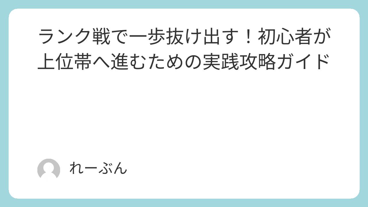 - 勝てない原因はここにある!ランク停滞のよくあるパターン