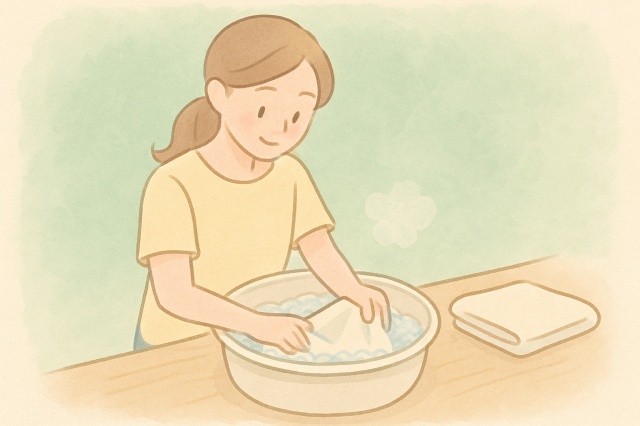 とくに白い布は糊が強めに残っていることも多いため、一度水通ししておくと安心です。