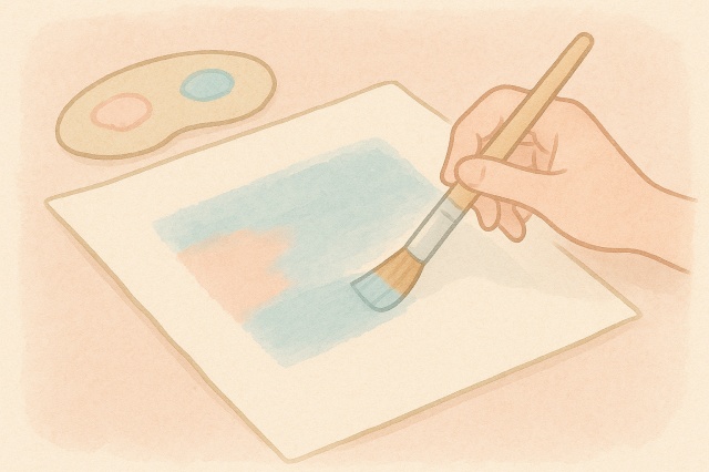 前処理後はしっかり乾かし、絵の具は“少しずつ”置くように塗ると、境界線がにじみにくくなりますよ。