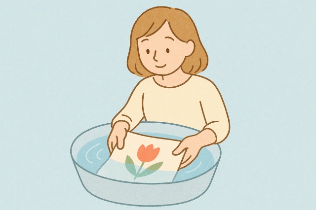 前処理として軽く洗っておくだけで、絵の具の食いつきが良くなり、発色も安定します。