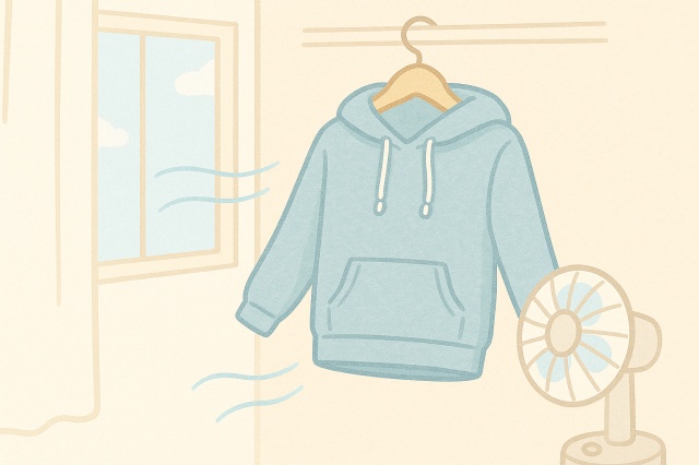 厚手パーカーは生地そのものが重く、内側まで風が届きにくいため、立体的に干して“風の通り道”を作ることが最重要ポイントになります。