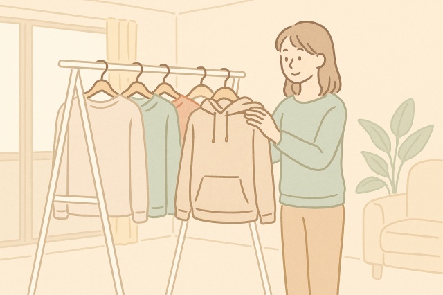 パーカーは干し方を少し工夫するだけで、驚くほど乾きやすさが変わります。