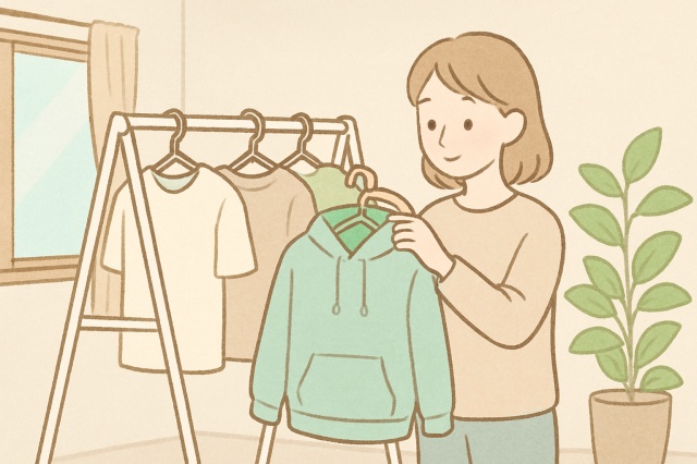 パーカーは構造上どうしても乾きにくいアイテムですが、干し方を工夫するだけで悩みは大きく減らせます。