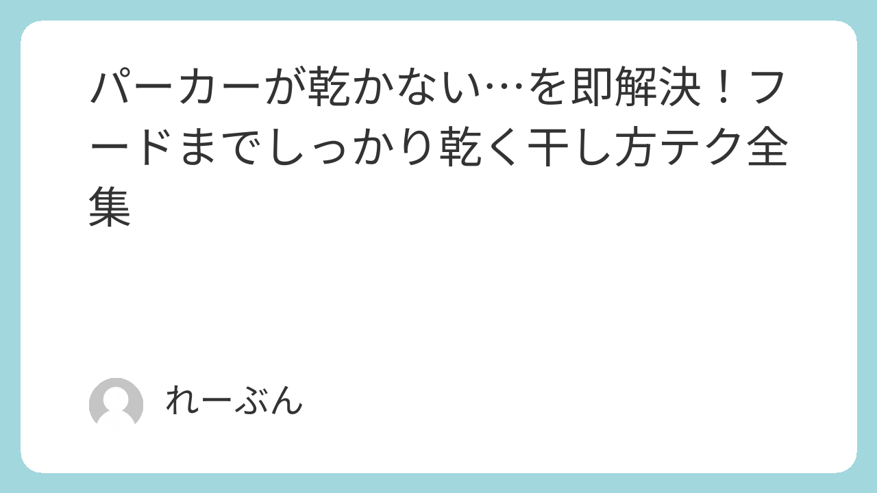 「どうして乾かないの?」「今すぐ乾かしたい!」というお悩みに寄り添いながら、フードまでしっかり乾く方法を丁寧に解説していきますね。