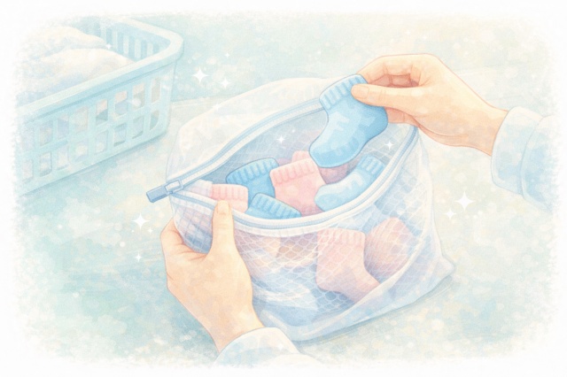 靴下は、洗濯のたびにまとめてネットに入れると安心感が高まります。