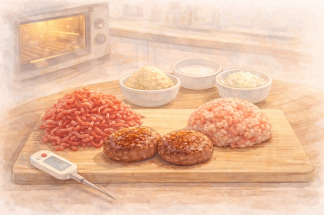 ハンバーグは、オーブン調理を取り入れることで失敗しにくくなります。