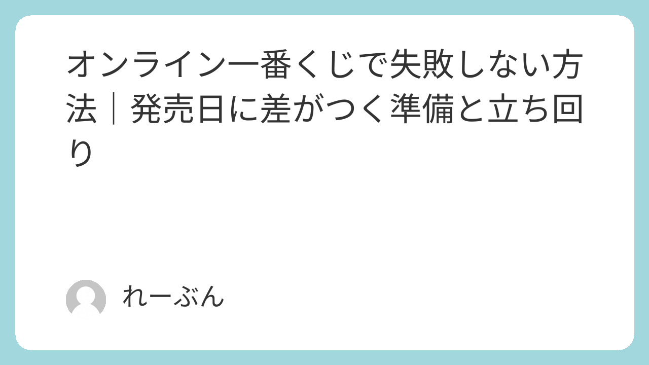 オンライン一番くじは当日の速さよりも準備が大切です。