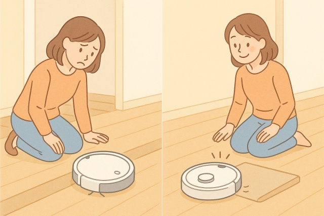 ロボット掃除機はタイヤが小さいため、わずかな段差でも止まってしまうことがあります。