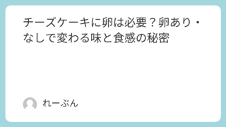 家庭 チーズケーキに卵は必要?卵あり・なしで変わる味と食感の秘密 チーズケーキを作ろうとレシピを検索すると、「卵あり」と「卵なし」の2種類が見つかります。同じチーズケーキなのに、なぜレシピが分かれているのか気になりますよね。実は、卵を入れるかどうかで見た目・味・食感が大きく変わるのです。卵ありのチーズケー... 家庭