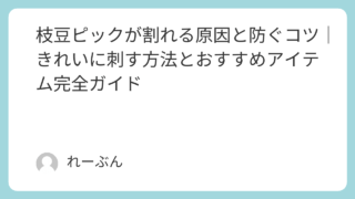 家庭 枝豆ピックが割れる原因と防ぐコツ|きれいに刺す方法とおすすめアイテム完全ガイド お弁当をかわいく飾りたいと思って枝豆ピックを使ったのに、刺した瞬間に割れてしまった…そんな経験をした方は少なくありません。一見シンプルに見える枝豆ですが、実はその“刺し加減”や“温度”、“水分量”が少し違うだけで、仕上がりが大きく変わります... 家庭