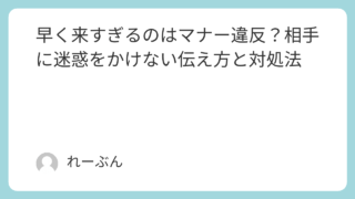 社会 早く来すぎるのはマナー違反?相手に迷惑をかけない伝え方と対処法 人との待ち合わせや訪問時、「早めに着いたほうが安心」と思って行動していませんか?実は、その"早め行動"が相手を困らせてしまうこともあるんです。この記事では、早く到着することがなぜ迷惑になるのか、そして上手に伝える方法や対処法を、女性にもわか... 社会