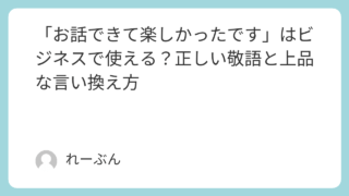 社会 「お話できて楽しかったです」はビジネスで使える?正しい敬語と上品な言い換え方 ビジネスの場では、何気ない一言があなたの印象を大きく左右します。「お話できて楽しかったです」というフレーズも一見すると感じが良いですが、実は相手や場面によってはカジュアルすぎる表現と受け取られることがあります。この記事では、ビジネスの場面で... 社会