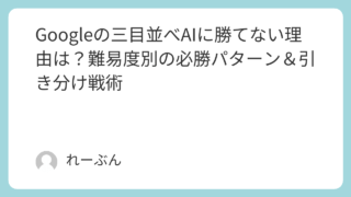 雑学 Googleの三目並べAIに勝てない理由は?難易度別の必勝パターン&引き分け戦術 Googleで「三目並べ」と検索すると、かわいい〇×ゲームが遊べることをご存じですか?手軽に楽しめるのに、いざやってみると「全然勝てない!」と感じる人が多いんです。実はこのGoogleの三目並べ、AIがかなり賢く設計されているため、人間が勝... 雑学